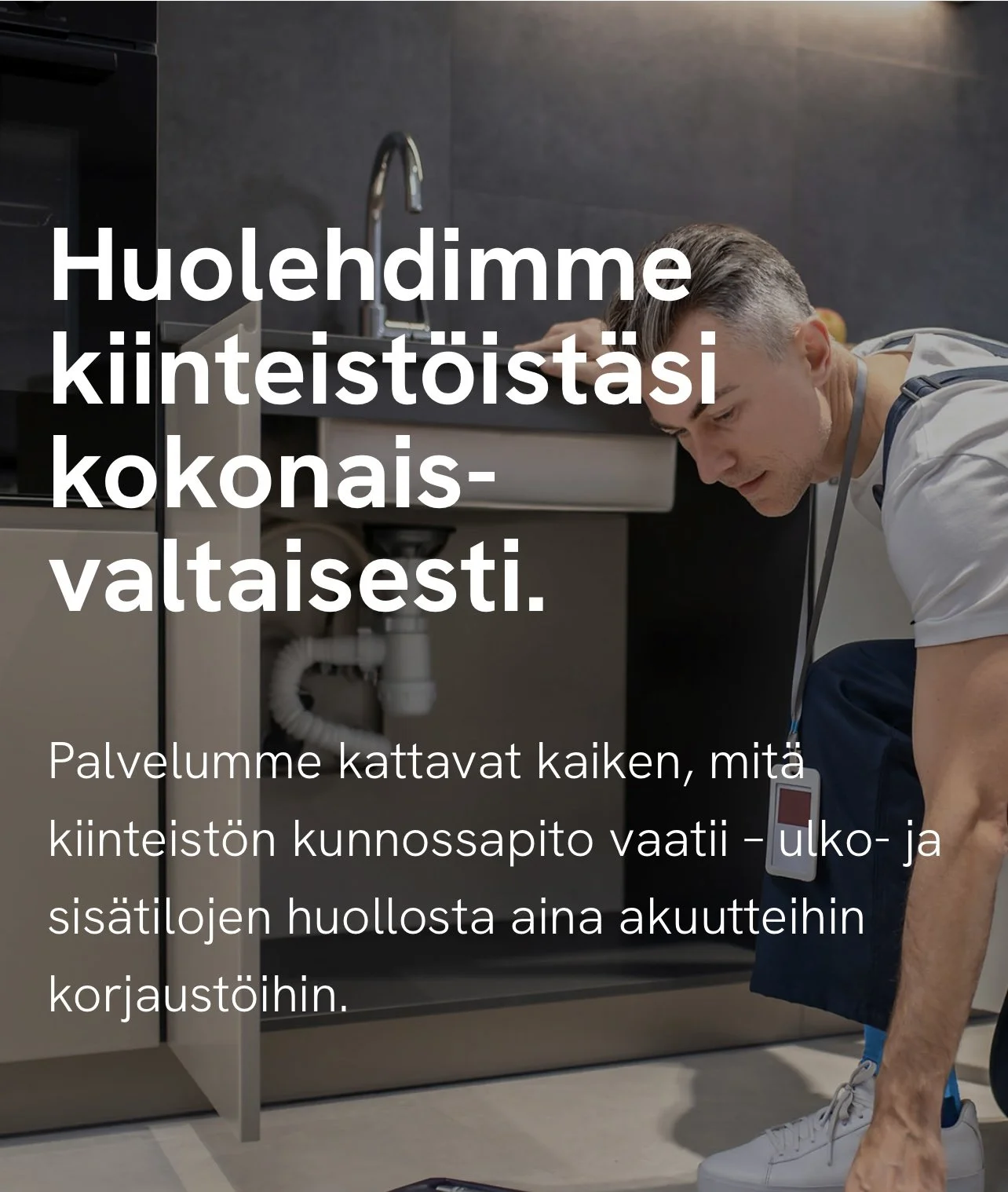 Kiinteistösi arvo säilyy ja asumismukavuus paranee, kun siitä huolehtii ammattilainen. Tarjoamme kattavat kiinteistöhuoltopalvelut niin taloyhtiöille, yrityksille kuin yksityisillekin. Palvelumme kattavat kaiken, mitä kiinteistön kunnossapito vaatii – ulko- ja sisätilojen huollosta aina akuutteihin korjaustöihin.